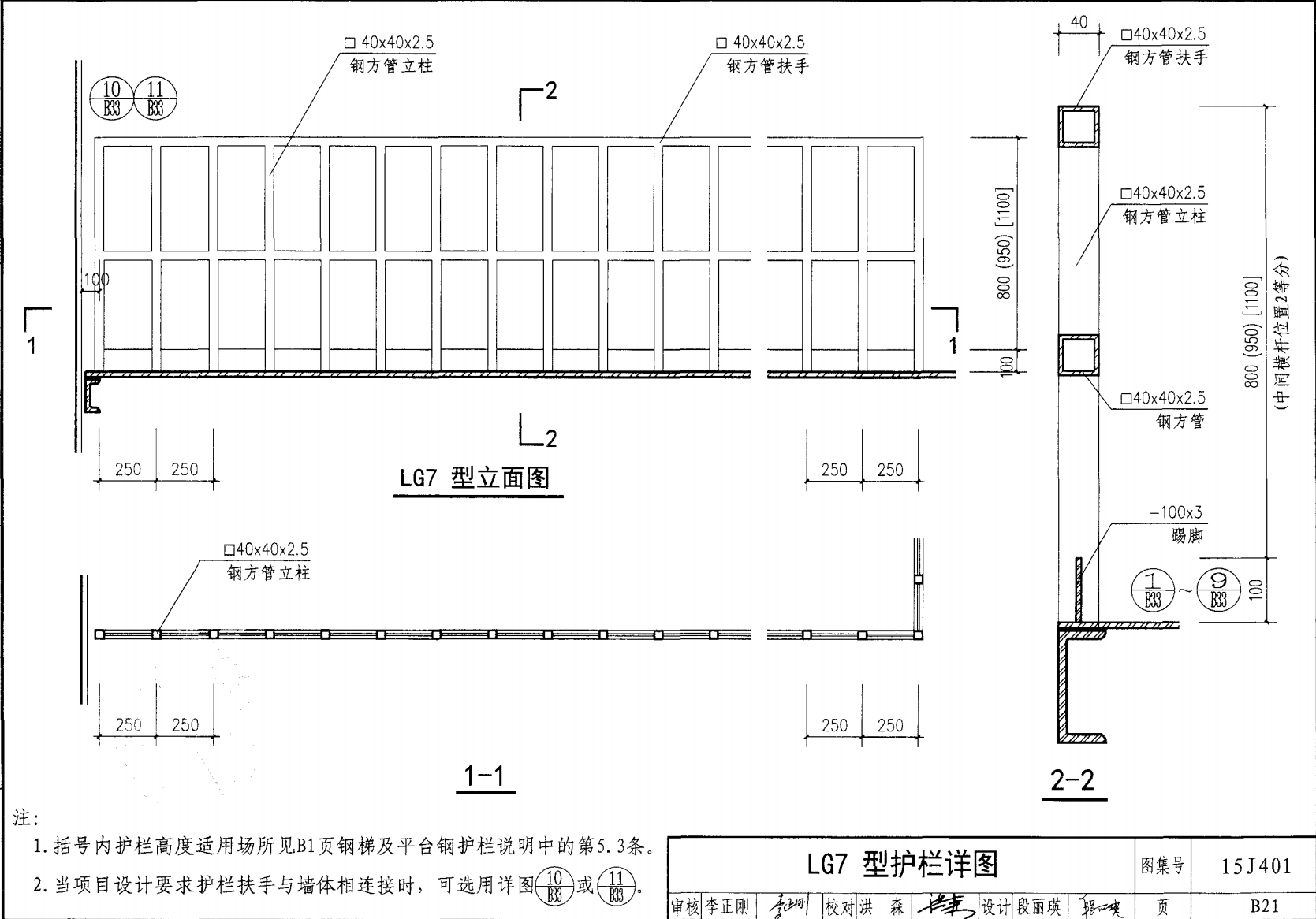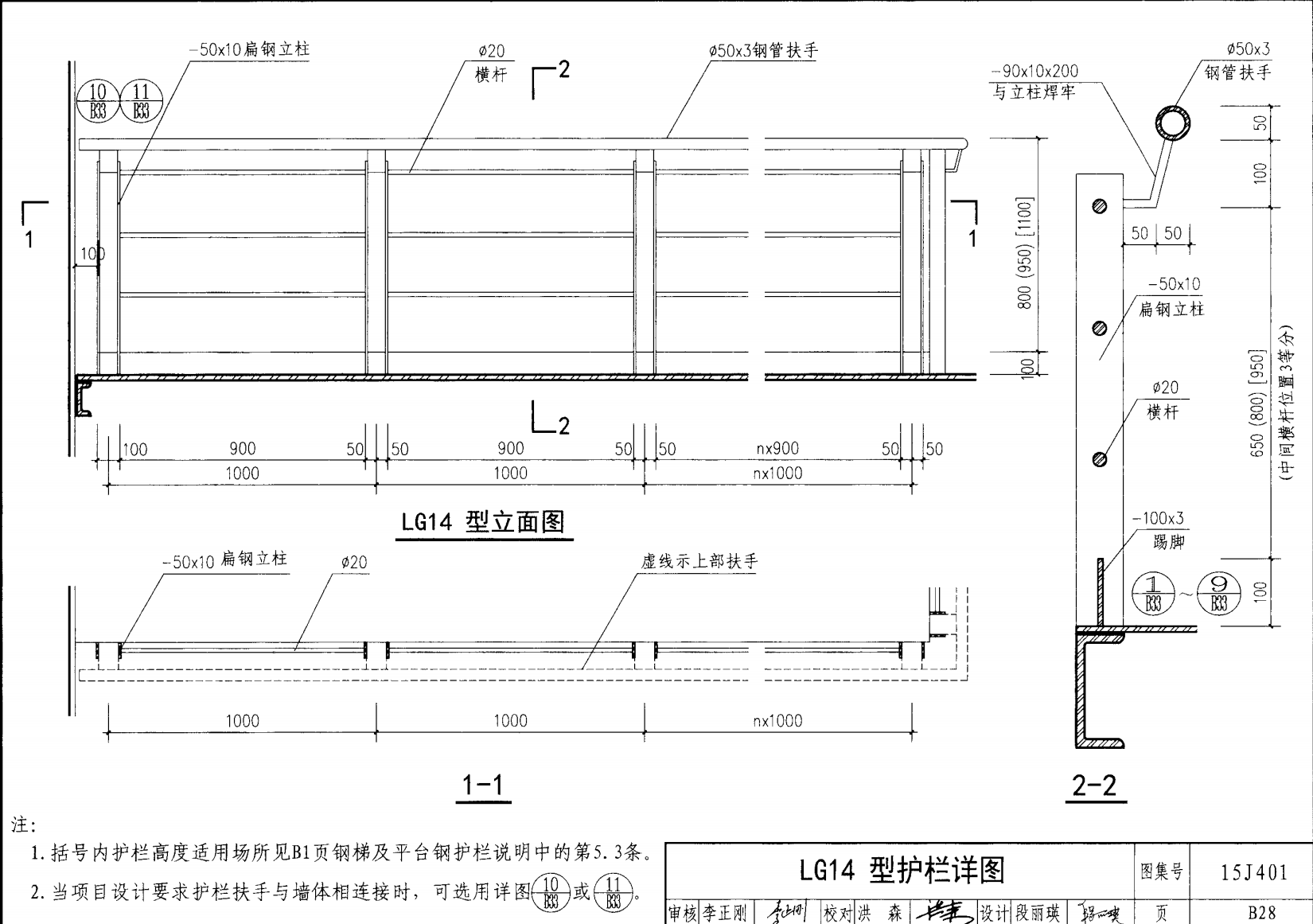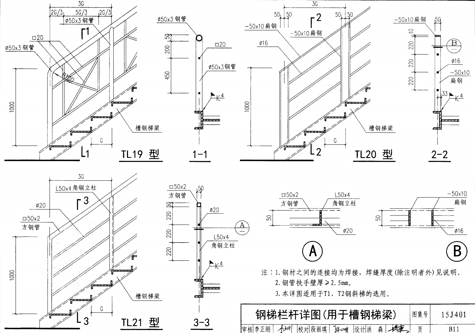 欄桿采用鋼材力學(xué)性能不低于 格證的鋼材Q235-B ,并具有碳含量合 所有欄桿均可用不銹鋼制作 欄桿的焊接要求應(yīng)符合《鋼結(jié)構(gòu)工程施工質(zhì)量驗(yàn)收規(guī)范》 GB50205-2001 證結(jié)構(gòu)設(shè)計(jì)強(qiáng)度的規(guī)定。當(dāng)焊接不便時(shí)可用螺栓連接,但應(yīng)保 鋼質(zhì)欄桿的涂裝要求可以熱鍍鋅和噴漆,噴塑 施工中如果用其他型鋼取代圖集中的立柱或減少立柱截 面尺寸,都應(yīng)按荷載規(guī)范認(rèn)真核算,以確保安全