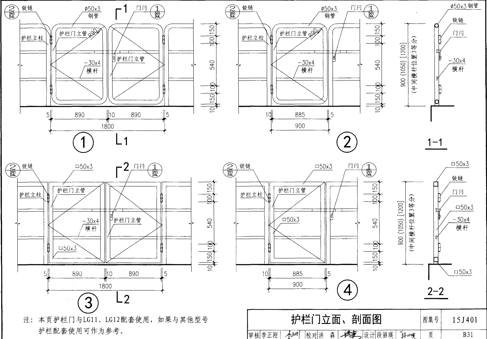 護(hù)欄門(mén)立面、剖面圖