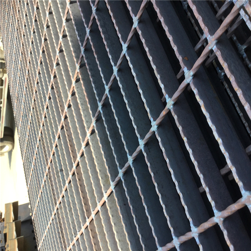 防滑鋼格柵板也叫鋸齒形鋼格柵板由一面是鋸齒狀的扁鋼焊合而成,或者是鋸齒形的扁鋼和鋸齒形的扁鋼交叉焊接而成。除具有普通鋼格板的特性和用途以外還具有較強的防滑能力,尤其適用于潮濕、滑膩的地方,海上采油平臺等。