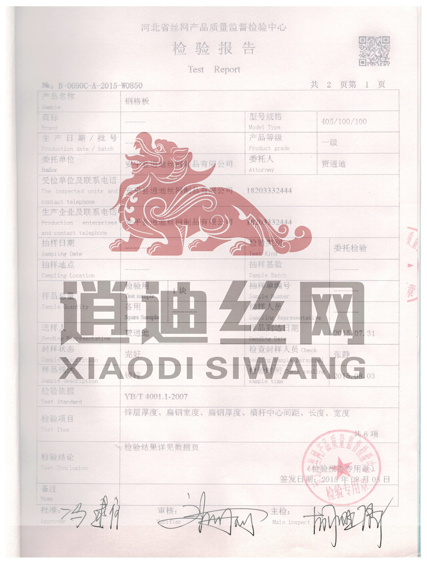 鋼格板檢驗(yàn)報(bào)告